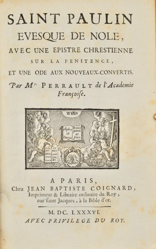 Saint Paulin Evesque de Nole, avec une epistre chrestienne sur la pénitence, et une ode aux nouveaux-convertis. Par M. Perrault de l'Académie Française.