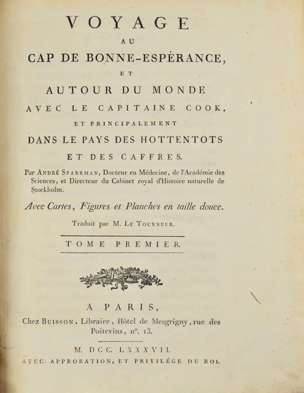Voyage au Cap de Bonne-Esperance, et autour du monde avec le Capitaine Cook, et principalement dans le pays des hottentots et des caffres.