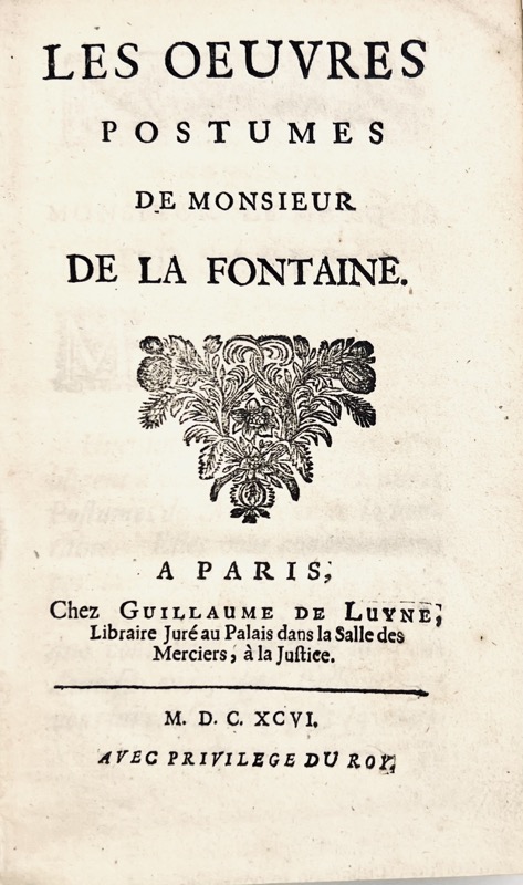Les Oeuvres postumes (sic) de Monsieur de La Fontaine.
