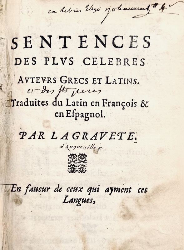 Sentences des plus célèbres auteurs Grecs et Latins. Traduites du Latin en François et en Espagnol. Par La Gravete. En faveur de ceux qui ayment ces langues.