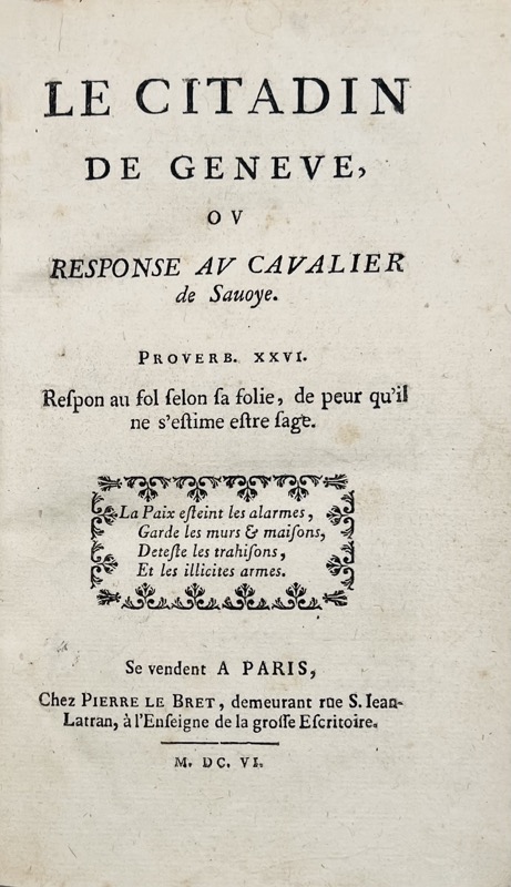 Le citadin de Genève ou response au Cavalier de Savoye.