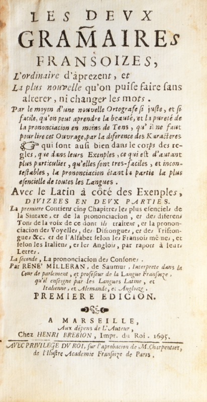 Les Deux Gramaires fransoizes, l'ordinaire d'aprezent, et la plus nouvelle qu'on puise faire, sans alterer ni changer les mots.