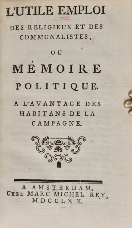L'Utile emploi des Religieux et des Communalistes, ou Mémoire Politique à l'avantage des Habitans de la Campagne.