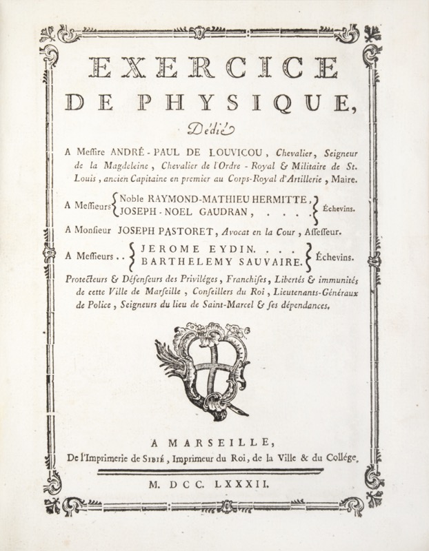 [Marseille]. Exercice de Physique dédié à Messire André-Paul de Louvicou.