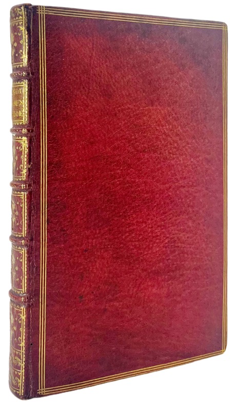 in-8 de 255 pp. Trente deux demandes proposées par le père Cotton. Avec les solutions adjoustées au bout de chasque demande. Item soixante quatre demandes proposées en contre-eschange. Genève, Pierre Aubert, 1625. In-8 de 56 pp. 2 pièces en 1 vol. in-8, maroquin rouge, dos orné à nerfs, pièce de titre de maroquin vert, triple filet doré d’encadrement sur les plats, tranches dorées (reliure du XVIIIe siècle).