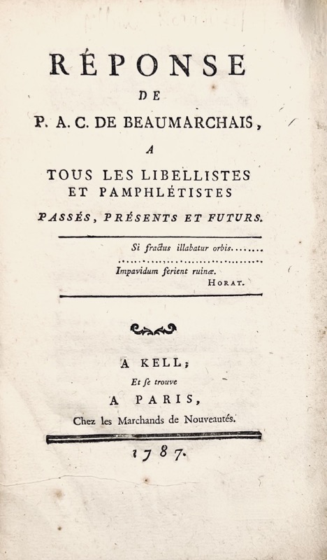 [Affaire Kornmann]. Réponse de P.A.C. de Beaumarchais à tous les libellistes et pamphlétistes, passés, présents et futurs.