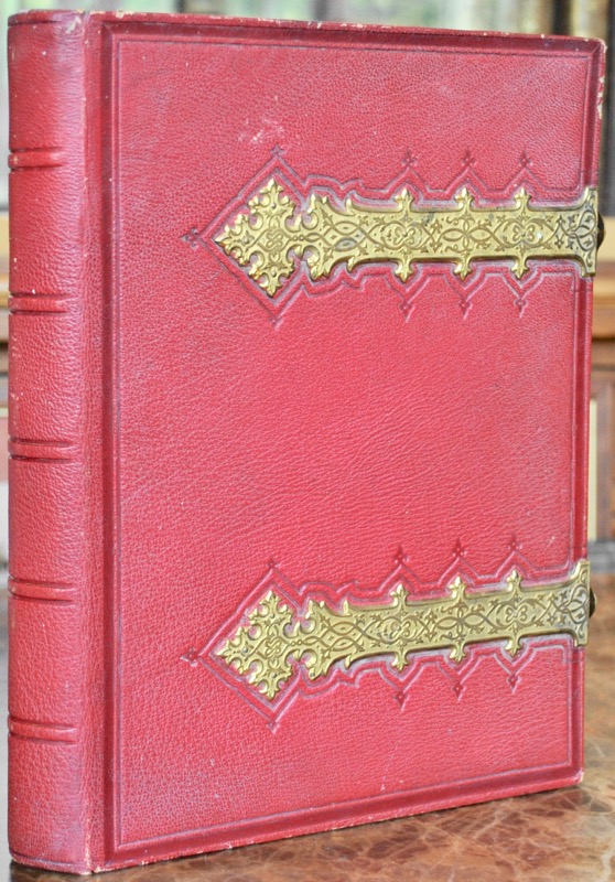 197 photographies format cabinet (87 x 53 mm) montées dans un album in-4 (280 x 210 mm), chagrin rouge, dos lisse, tranches dorées, plats décorés de 2 fermoirs en bronze ciselés et dorés (reliure de l’époque).