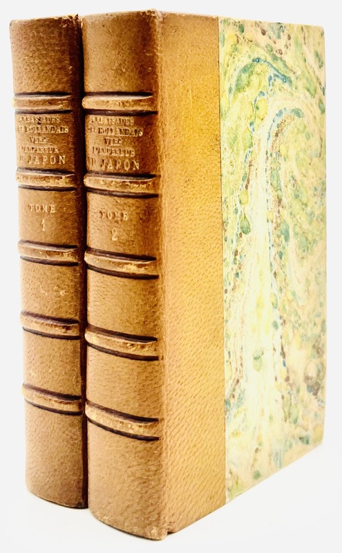 Première édition française au format in-12, illustrée d’un frontispice gravé. Arnold Montanus (1625-1683), historien et théologien calviniste, n’a jamais quitté l’Europe mais a développé une passion pour les relations de voyages dans les pays lointains. Le livre doit beaucoup aux observations des missionnaires jésuites et surtout aux documents tirés des archives de la Compagnie des Indes orientales, celle-ci étant le seul partenaire commercial européen encore toléré. Polak & Dugrand, 58-61 : « Somme exceptionnelle des connaissances sur le Japon du XVIIe siècle » ; Cordier, Japonica, 385. Marque de Jan van Gelder à la tortue avec la devise Paulatim, imprimée au titre.