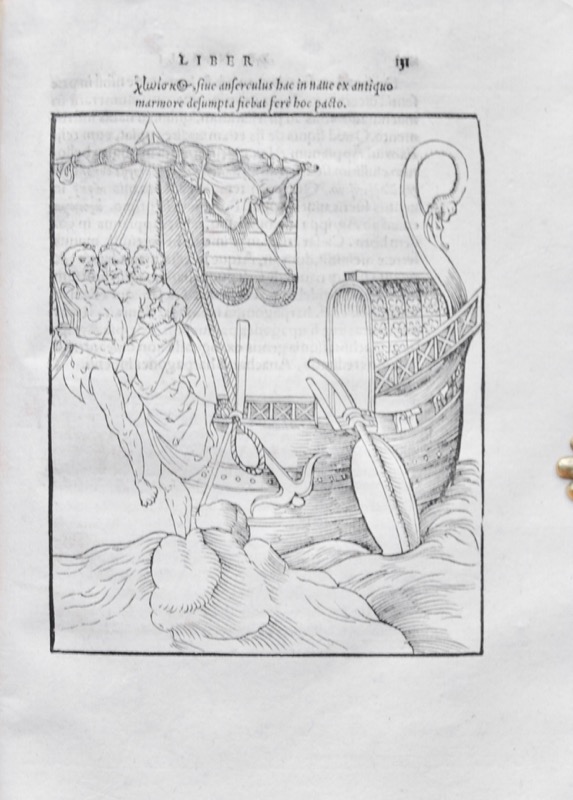 Première édition bâloise sortie des presses de Hieronymus Froben avec sa marque typographique sur le titre répétée au verso de l’ultime feuillet. Recueil établi et imprimé une première fois l’année précédente (1536) par les frères Charles et Robert Estienne des trois traités du diplomate Lazare de Baïf, sur les navires, les vêtements et les vases anciens – augmenté du traité des couleurs d’Antonio Telesio. Lettrines et 34 bois gravés dans le texte, la plupart à pleine page, de navires, vases antiques et costumes anciens. L’épître dédicatoire est adressé à François Ier, le texte est imprimé en latin et en grec pour le premier traité, en latin pour les trois autres. Diplomate, humaniste et poète français, Lazare de Baïf (1496-1547) est le père du poète Jean-Antoine de Baïf dont Charles Estienne (1504-1564) fut le précepteur. C’est au retour de son ambassade à Venise qu’il composa en latin son traité sur l’architecture navale et la navigation des anciens ; on reprocha à Etienne Dolet de s’en être inspiré pour son De re navali publié à la même époque. En 1540, Lazare de Baïf, chargé par François Ier d’une mission en Allemagne, partit accompagné de Charles Estienne avec lequel il partageait une goût assez vif pour l’Antiquité et un secrétaire âgé de seize ans, Pierre Ronsard. Exemplaire à grandes marges, quelques notes marginales à l’encre du temps. Pâle mouillure cornière sur les feuillets liminaires (en tête et fin d’exemplaire), quelques feuillets roussis, traces de salissures avec petit manque de vélin en pied. Brunet, I, 710 ; Adams B35 ; Renouard 44/19 (pour l’édition originale).