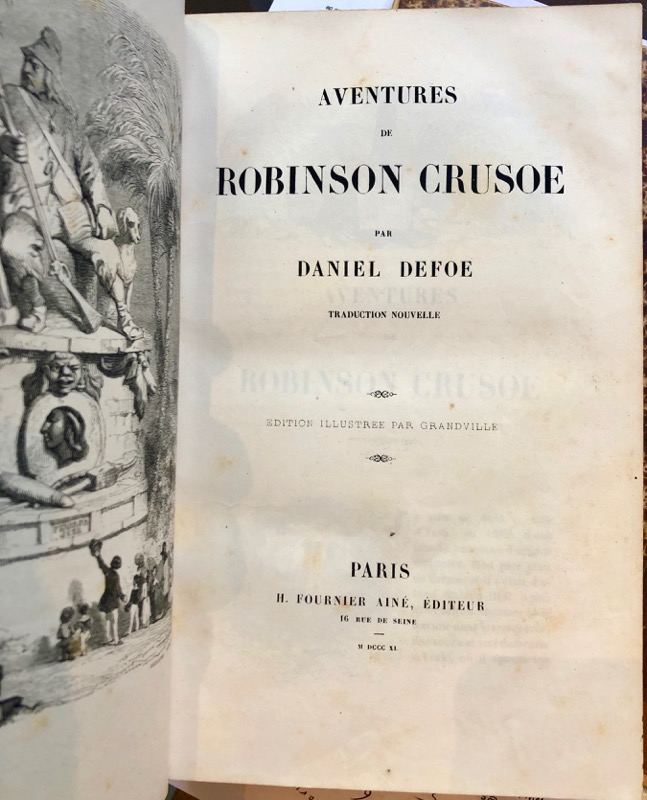 Premier tirage des illustrations d’après Grandville. Frontispice et 40 planches hors texte gravé sur bois avec légendes, d’après Grandville et Français (ce dernier pour les paysages). Vignettes dans le texte. Bel exemplaire dans une jolie reliure signée, quelques rousseurs. Carteret III, 241 ; Vicaire III, 750 ; Fléty, Dictionnaires des relieurs français, 114.