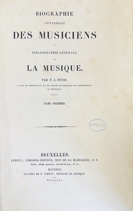 Biographie universelle des musiciens et bibliographie générale de la musique.