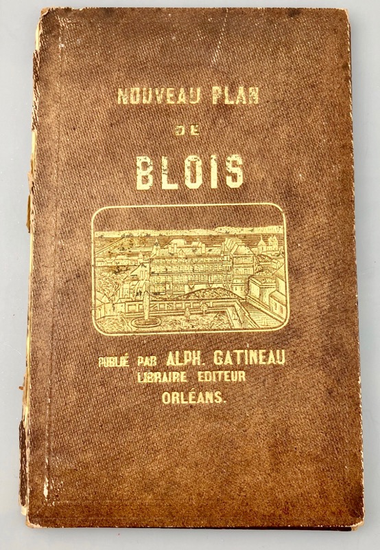 Plan en couleurs gravé par Delamare, enrichi de la table alphabétique des rues, quais, places de la ville de Blois et 3 vignettes en couleurs. Note manuscrite à l’encre du temps sur le contreplat supérieur : Blois, le mardi 24 août 1858.