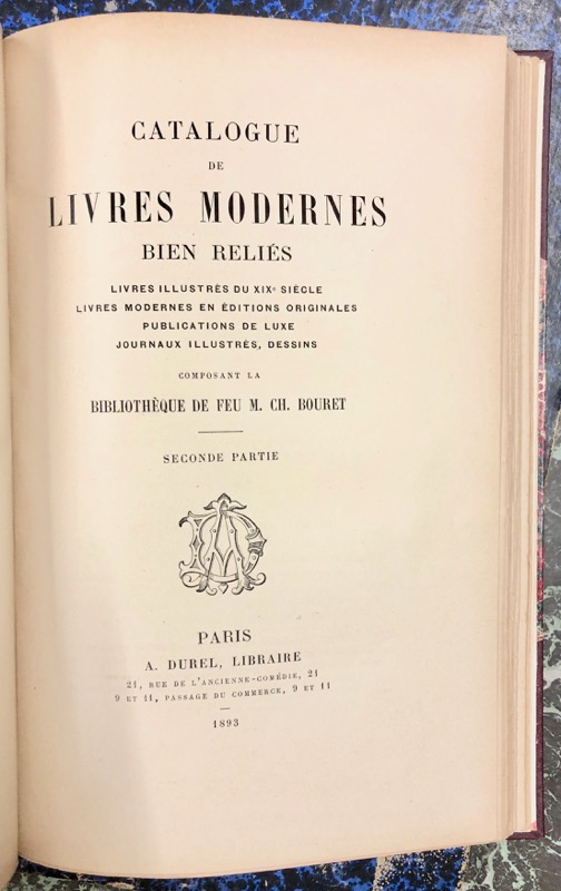 Catalogue de très beaux livres modernes, livres à figures du XVIIIe siècle, livres illustrés du XIXe siècle, livres modernes avec aquarelles originales, publications de grands luxe composant la bibliothèque de feu M. Ch. Bouret.