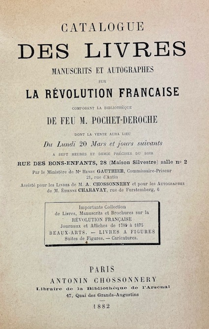 ![Catalogue des livres, manuscrits et autographes sur la Révolution française composant la bibliothèque de feu M. POCHET-DEROCHE dont la vente aura lieu du lundi 20 mars [1882] et jours suivants.](https://bonnefoi-livres-anciens.com/wp-content/uploads/2025/08/995_1.jpg)