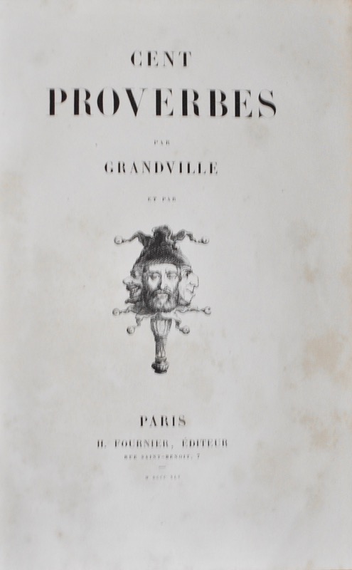 Édition originale et premier tirage des gravures. Frontispice et 50 gravures sur bois hors-textes dont l’autoportrait de Granville page 354, lettrines, en-têtes et culs-de-lampe. Ex-libris « Marquis de Civille » sur le contreplat supérieur ; Léon Poret de Civille (1779-1857) fut autour de 1830 maire de la commune de Bois Heroult en Normandie. Des rousseurs mais bon exemplaire. Vicaire III, 1123 ; Carteret III, 282 : « Livre estimé, un des meilleurs de Grandville ».