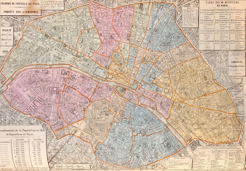 Monumentale enquête sur les activités industrielles de la capitale qui ne fut menée que deux fois par la Chambre de commerce de Paris : en 1847-48 (publication en 1851) ; en 1860 (publication en 1864). Importante masse documentaire sur la vie économique de la capitale au moment de la première révolution industrielle.