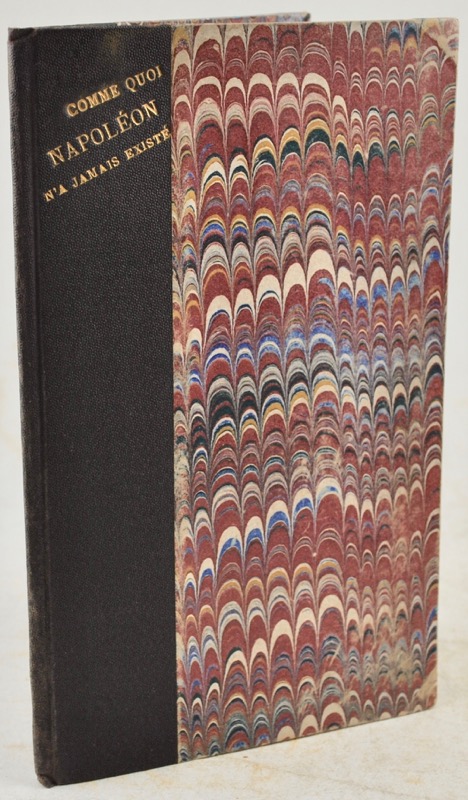 Nouvelle édition augmentée de l’ouvrage de Jean-Baptiste Pérès publié anonymement pour la première fois en 1827. On sait que l’auteur irrité des démonstrations de l’inexistence de Jésus-Christ, opposa ses paradoxes à ceux de Dupuis, l’auteur de l’Origine de tous les cultes ou Religion universelle, 1794. En suivant la même méthode, il offrit de prouver que Napoléon n’a jamais existé : il n’est qu’un mythe solaire, un mythe d’Apollon. « La première édition est anonyme et a paru en 1827. M. Pérès, se trouvant à la campagne chez un de ses amis, y rencontra un jeune étudiant, partisan effréné de Depuis et de ses systèmes ; M. Pérès chercha à le convaincre de l’inanité des démonstrations de Dupuis, et il finit, par lui offrir de lui prouver en suivant la même méthode que Napoléon n’a jamais existé. L’offre fut acceptée. M. Pérès se mil à l’oeuvre et au bout de quelques jours il lut à son adversaire le charmant petit écrit que vous savez. On s’en amusa beaucoup, et M. Pérès le laissa imprimer à Agen » (Quérard & Bourquelot). Jean-Baptiste Pérès fut successivement professeur de physique et de mathématiques chez les oratoriens de Lyon, avocat à Agen puis conservateur de la bibliothèque de la même ville où il mourut en 1840. Bel exemplaire malgré quelques rousseurs. Blavier, 246 ; Quérard et Bourquelot V, 631.