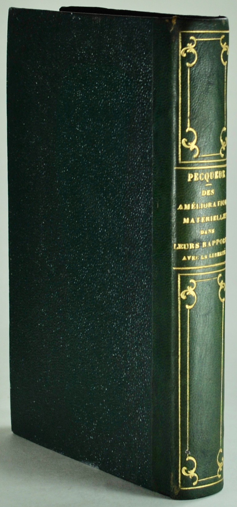 Deuxième édition (la première en 1840). « Comme Pierre Leroux, C. Pecqueur (1801-1887) est un dissident du saint-simonisme qui s’est imprégné de proudhonisme et du christianisme. Il a assez peu influencé ses contemporains et pourtant sa contribution à l’histoire de la pensée économique fait date et Marx l’a reconnu à plusieurs reprises » (Droz I, p. 376). Bon exemplaire. Quelques pâles rousseurs.