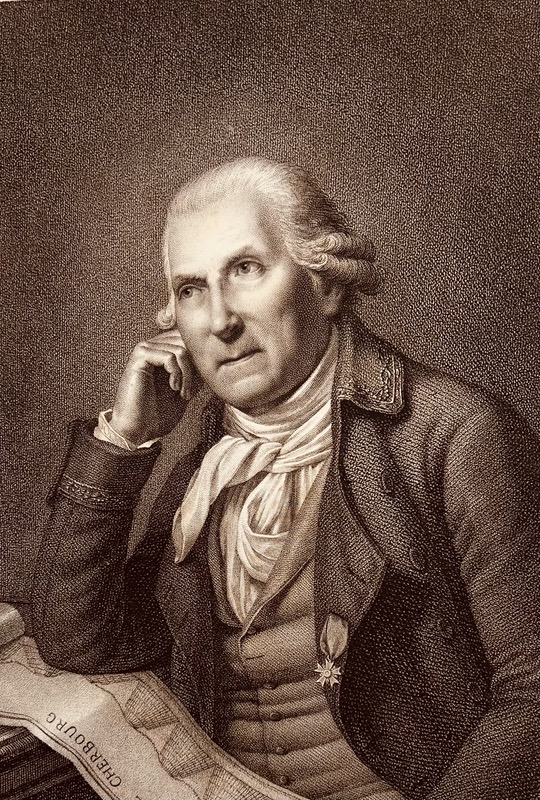 Portrait-frontispice de l’auteur gravé par B. Roger d’après Bouché, un tableau dépliant et 67 planches dépliantes gravées par Michel ou Collin, Unique édition de ce recueil tiré à petit nombre à l’initiative de Dubois d’Arnouville, et réservé aux souscripteurs. Il réunit les études et mémoires des principales réalisations du grand ingénieur que fut Cessart : I. Pont de Saumur. Pont et quai de Rouen. Port du Havre. Port du Tréport. Pont des Arts à Paris. – II. Port de Dieppe. Rade de Cherbourg. Louis-Alexandre de Cessart (1719-1806) avait commencé sa carrière dans la Gendarmerie de la Maison du Roi, et il avait fait à ce titre les campagnes de 1743 à 1746, assistant au batailles de Fontenoy et de Raucoux. Mais, à l’issue de la Guerre de Succession d’Autriche, il se fit admettre en 1747 dans le corps des Ponts et Chaussées, où il devait s’illustrer jusqu’à sa mort. Il commença par être nommé ingénieur de la Généralité de Tours en 1751, et c’est dans ce poste qu’il construisit le Pont de Saumur en 1756. Puis il devint ingénieur en chef, d’abord à Alençon (1757), puis à Rouen (1776), où il établit une partie des quais, en même temps qu’il travaillait aux ports de Dieppe, du Tréport et du Havre. En 1781, il fut chargé de travailler au môle de Cherbourg. Promu ingénieur général en 1783, il demanda à être relevé de ses fonctions en 1791. Sa dernière réalisation fut cependant, à Paris, le célèbre Pont des Arts bâti en 1801. Exceptionnel exemplaire au chiffre de Denis Decrès (1761-1820), ministre de la Marine de 1801 à 1814. Quoique ce D sommé de l’aigrette des ducs pût aussi convenir à Duroc, Grand Maréchal du Palais, la présence d’ancres marines dans la décoration fait pencher en faveur du marin de façon quasi certaine. Frère I, 206.