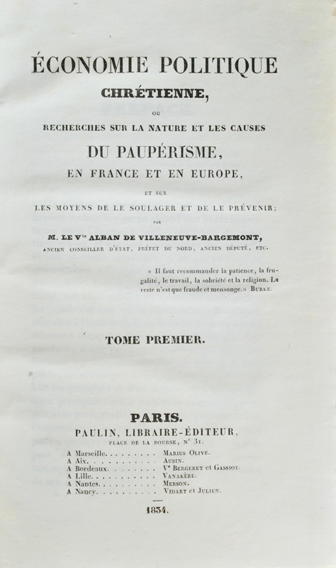 Economie politique chrétienne, ou recherches sur la nature et les causes du paupérisme, en France et en Europe, et sur les moyens de le soulager et de le prévenir.
