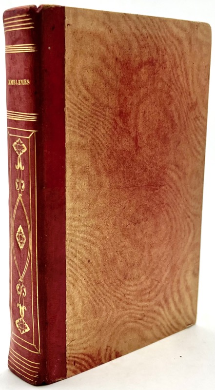 In-12 de (16) pp. 236 pp., titre-frontispice et 119 emblèmes, demi-basane rouge, dos lisse orné, tranches mouchetées bleues (reliure romantique du XIXe siècle).