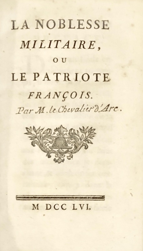 Développement du moyen de libération des dettes de l’Etat par un emprunt en rentes viagères et nécessiée du maintien du secret des finances. Philippe de Sainte-Foix d’Arcq (1721-1795) était le fils naturel du comte de Toulouse, fils légitimé de Louis XIV. « L’ouvrage que je donne aujourd’hui, est le fruit de cinquante ans de réflexions, de travail et d’expériences acquises par les circonstances de ma vie, qui, pendant vingt ans m’ont mis à portée de voir l’administration de très-près ». (Préface). La première publication du chevalier d’Arcq, fut La Noblesse militaire, ou Le Patriote françois (1756), pour réfuter le point de vue de l’abbé Coyer, auteur de La Noblesse commerçante. Ne figure pas dans les bibliographies spécialisées (Kress, Einaudi, INED, Goldsmiths). 2 coiffes abimées, trace de mouillure angulaire sur quelques feuillets.