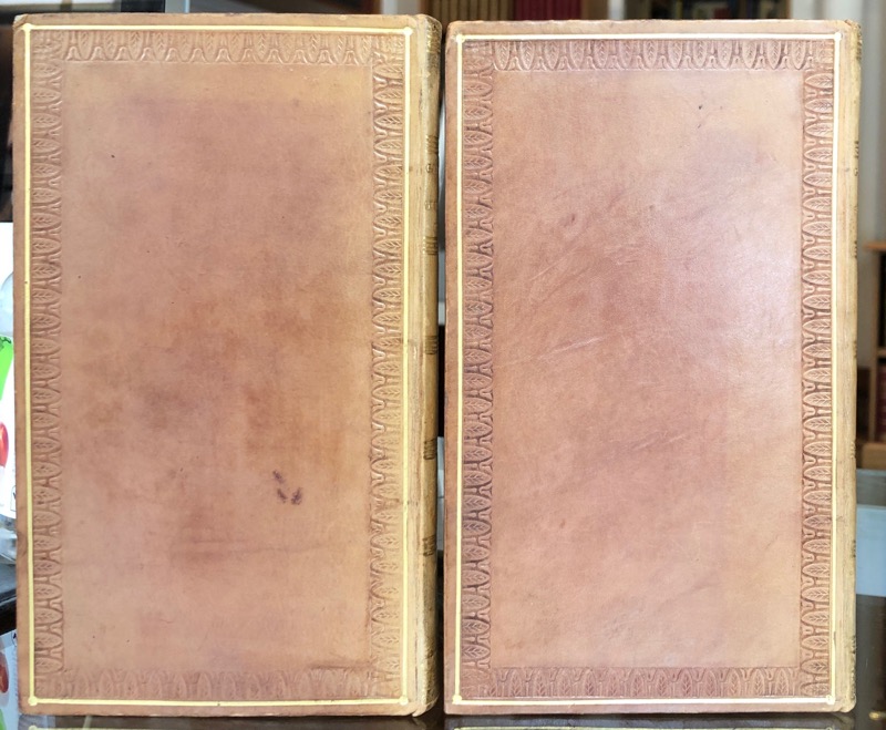 2 parties en 2 vol. in-12 de (10)-291-(1) pp. ; (6)-302 pp., veau glacé, dos lisse orné, frise à froid et filet doré d’encadrement sur les plats (Bradel-Derôme).