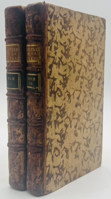 Édition avec le texte donné par les cartons, établie page pour page sur la première faite sous le voile de l’anonyme par le libraire parisien Saillant et imprimée par Prieur d’après un manuscrit incomplet qui leur aurait été livré par le chevalier de La Morlière, ce dernier le tenant du marquis de Ximénez. C’est une première ébauche du Précis du siècle de Louis XV publié en 1768 par Cramer ; nommé historiographe du roi le 1er avril 1745, Voltaire se devait de célébrer les mérites de son bienfaiteur, ce dont il s’acquitta dès 1748 en s’attelant à la composition d’une Histoire de la guerre de 1741. Saisie, à sa demande, l’édition fut enfermée à la Bastille, puis rendue aux libraires par Malesherbes, sur la représentation qu’une édition identique venait de paraître à son tour. Le texte s’arrête après le récit de la bataille de Fontenoy suivi de « Addition à l’Histoire de la guerre de 1741. Affaire de Gênes, en 1746 & 1747 », tandis que le manuscrit complet allait jusqu’à la paix d’Aix-la-Chapelle. Ex-libris gravé « de Ste Agathe » sur le contreplat de chaque volume. Bengesco, I, 1232 ; L’Oeuvre imprimé de Voltaire à la BN, 3548 ; Besterman n°6002 et 6012.