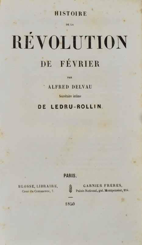 Histoire de la Révolution de Février par Alfred Delvau secrétaire intime de Ledru-Rollin.
