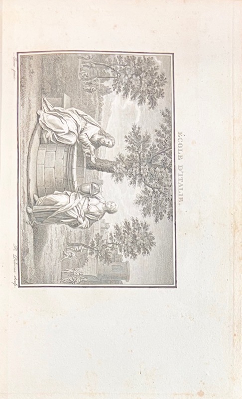 Magnifique reliure aux mille points de Bozerian. « Belle édition de cet ouvrage estimé » (Brunet) illustrée de 75 planches hors-texte gravés sur vergé fort au burin par Jacques-Louis Petit (1760-1812), d’après les plus célèbres tableaux des écoles italienne, française et flamande. dont une carte de la Palestine. Provenance : bibliothèque des Monteynard (ex-libris). Superbe exemplaire à très grandes marges dans une reliure à encadrement signée François Bozerian dont le décor est décrit pour un autre titre par Paul Culot dans la Bibliotheca Wittockiana. Reliures Directoire et Empire, n°103 ; Brunet, III, 1077 ; Beraldi, X, 265.