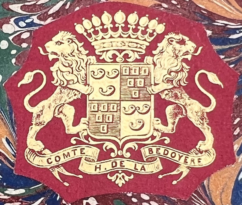 Deuxième édition, revue, corrigée, augmentée d’un Appendice et ornée d’une gravure en taille douce en frontispice d’après Moreau le Jeune. Exemplaire de l’auteur en grand papier, à grandes marges, avec le frontispice en deux états (avant la lettre sur papier blanc et avec la lettre sur papier de Chine). Militaire de carrière mais aussi bibliophile érudit, Henri Huchet, comte de La Bédoyère, a possédé l’une des plus importantes collections de livres du XIXe siècle. Il se défit d’une première partie en 1837, l’essentiel étant dispersé après sa mort en plusieurs ventes publiques. Cette collection comportait notamment un fonds d’environ 100.000 volumes sur la Révolution française, acquis en janvier 1864 par la Bibliothèque impériale moyennant la somme de 90.000 francs (pour moitié financée avec les fonds provenant du legs du duc d’Otrante). Quant à la collection de 4.000 estampes historiques, elle avait été acquise dès 1862. Provenance : bibliothèque du comte de La Bédoyère avec ex-libris armorié sur pièce de cuir ; Catalogue (1862), n°1982.