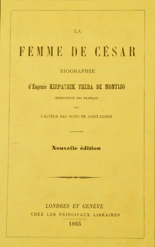 La Femme de César. Biographie d'Eugénie Kirpatrik Théba de Montijo Impératrice des Français par l'auteur des nuits de Saint-Cloud. Nouvelle édition.