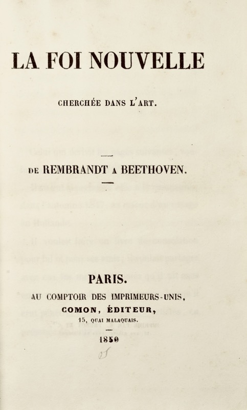 La Foi nouvelle cherchée dans l'art. De Rembrandt à Beethoven.