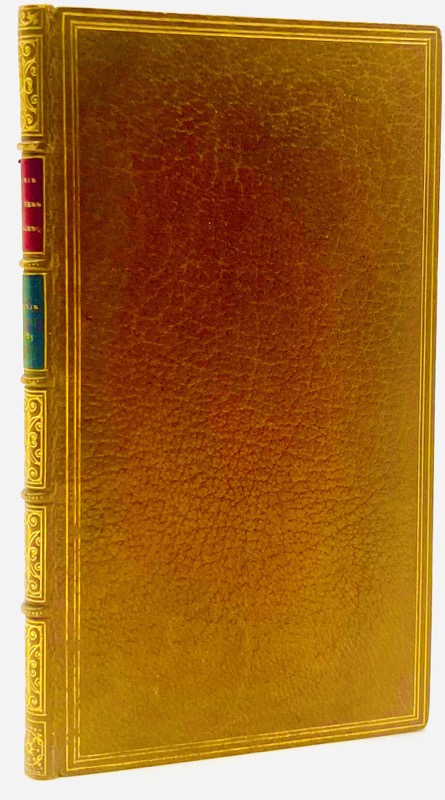 In-16 de 84 pp., maroquin fauve, triple filet d’encadrement sur les plats, dos ornéà nerfs, dentelle intérieure, tranches dorées (David).