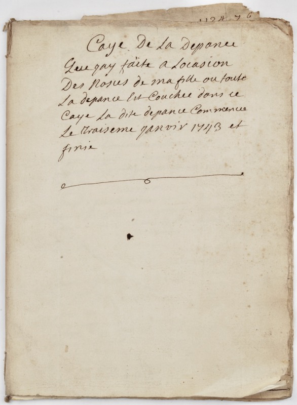 Manuscrit in-4 broché de (20) pp. [A la fin] (2) ff. : Mémoire de la recette commencée / Recette commencée le 15eme janvier 1743 : Du 15eme janvier 1743 Resceu de Mme de M Laurens etc ».