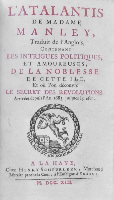 Première édition française dans la traduction de Henry Scheurleer et Jean Rousset, parfois attribuée à Anne Marguerite Dunoyer. Un deuxième tome sera publié la même année séparément. Satire à clef des moeurs politiques anglaises dans laquelle Astrée visite une île appelée Atlantis située en Méditerranée ; la liste des personnalités est placée en fin d’ouvrage. Publié une première fois à Londres en 1709 sous le titre Secret memoirs and manners of several persons of quality, of both sexes, from the new Atalantis, an island in the Mediterranean, l’ouvrage fut aussitôt saisi, l’imprimeur et l’éditeur arrêtés. Très bel exemplaire. Frontispice et titre remontés. Provenance : bibliothèque Pierre Desq (ex-libris), bibliophile lyonnais (Catalogue des livres rares et précieux (1866), n°766). Gay I, 299-300 ; Sgard, Dictionnaire des Journalistes, p. 363.