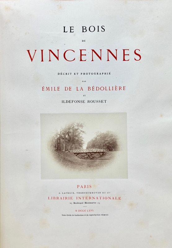 Édition originale ornée 25 photographies montées et d’un plan du bois de Vincennes. Bel exemplaire. Quelques rousseurs.