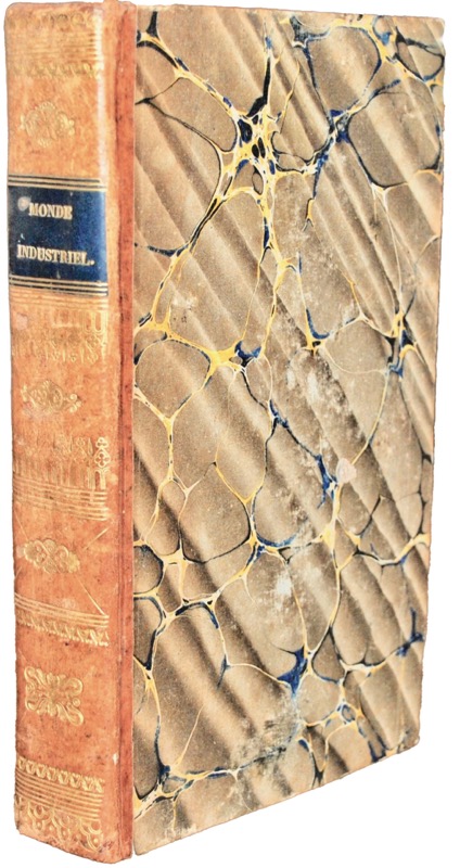 In-8 de XVI-576 pp., demi-basane blonde, dos lisse orné, pièce de titre en veau noir (reliure de l’époque). Le Nouveau Monde Industriel, ou Invention du Procédé d’Industrie attrayante et combinée, distribuée en séries passionnées. Livret d’annonce. Paris, Bossange Père et les Marchands de Nouveautés, 1830. In-8 broché de 88 pp., couverture imprimée.