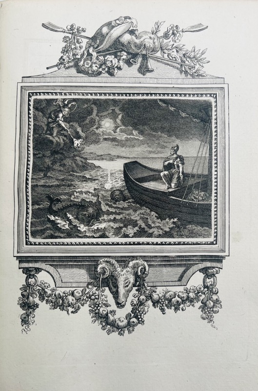 In-4 de (4)-176 pp., texte dans un encadrement, avec un frontispice et 28 planches gravées, veau havane, dos lisse orné, triple filet doré d’encadrement sur les plats, pièce de titre en maroquin rouge, tranches dorées (reliure de l’époque).