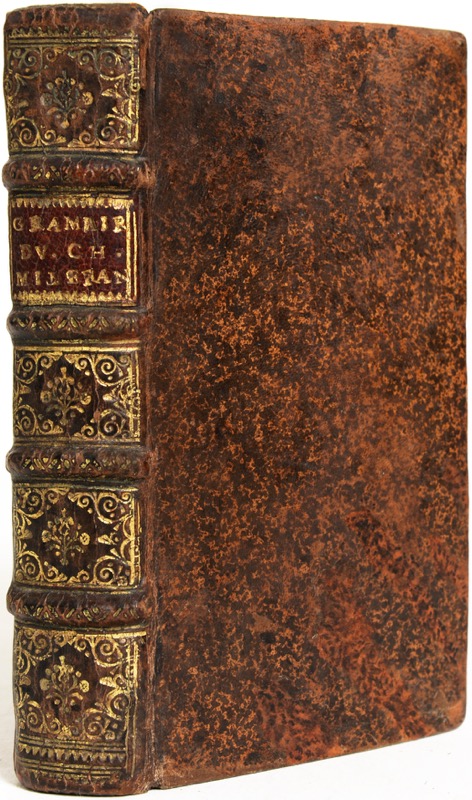 2 parties en 1 vol. in-12 de (24)-172-(4) pp., 180-(20) pp. (sign. a6 e6 A-O6 P4 A-Q6 R4, le dernier blanc), portrait gravé hors texte, veau brun, dos orné à nerfs orné, pièce de titre en maroquin rouge (reliure de l’époque).