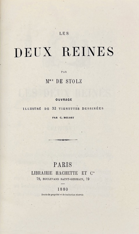 Un des rares exemplaires tirés sur papier de chine. Collection Bibliothèque rose illustrée. Édition originale illustrée de 32 gravures sur bois par C. Delort. Madame de Stolz est le pseudonyme de Fanny de Bégon (1820-1892). Vicaire, I, 781 ; Gumuchian, 696.