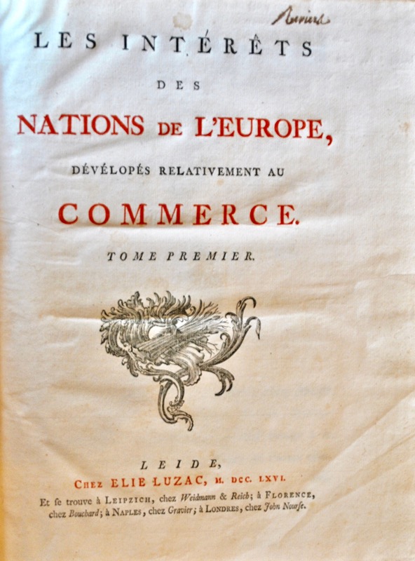 Édition originale. Accarias de Serionne rejette les théories physiocratiques ; il pense que la découverte de l’Amérique a fortement augmenté les capacités industrielles et agricoles de l’Europe, d’où une forte augmentation de la population européenne. Bel exemplaire. Le faux-titre du premier volume manque. INED, 12 ; Kress, 6310 ; Einaudi, 55 ; Sabin, 7934.