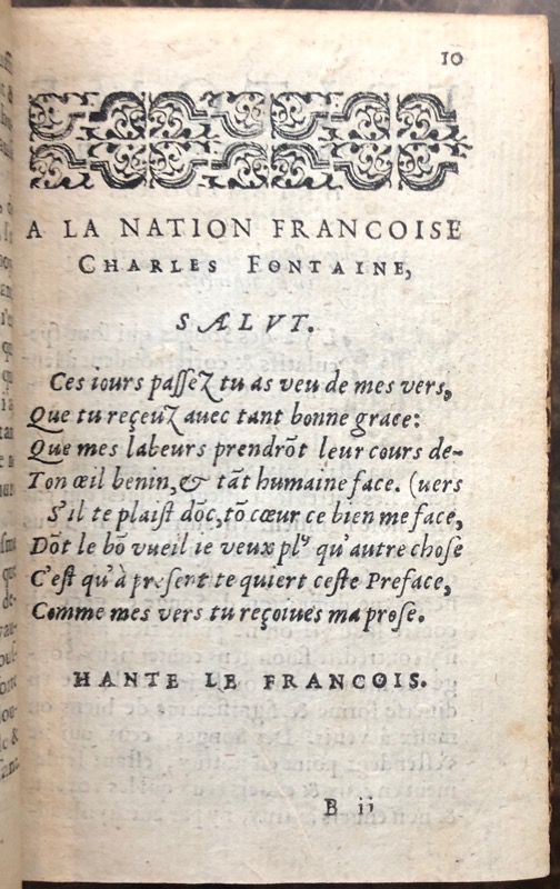 In-16 de 89-(6)-49 ff., veau fauve, dos lisse orné, pièce de titre en maroquin rouge, filet et frise dorés d’encadrement sur les plats, tranches dorées (relié vers 1800).