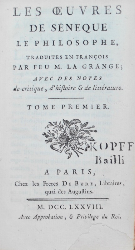 Édition originale de l’Essai sur la vie de Séneque de Diderot qui forme le septième volume. Coiffes usées.