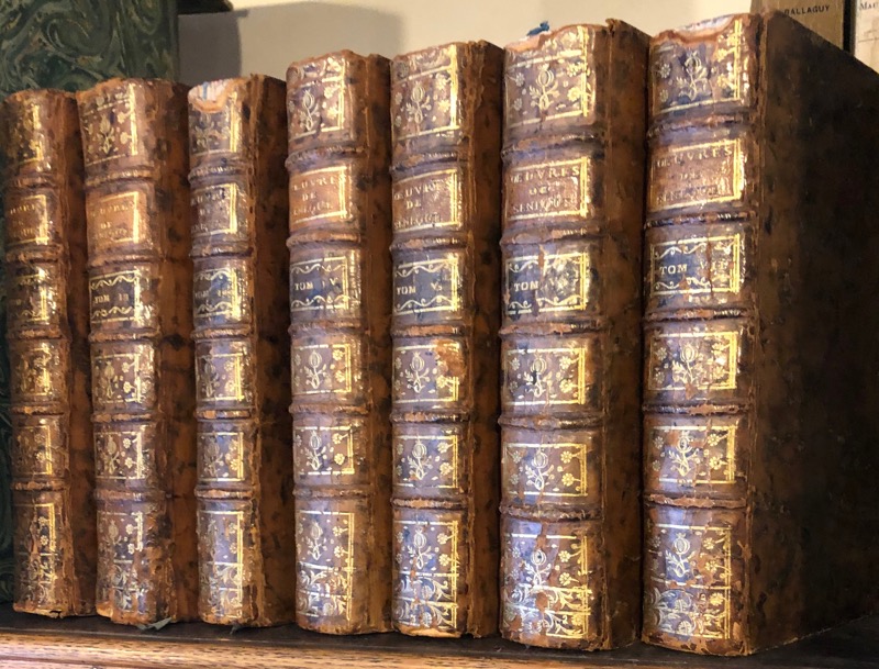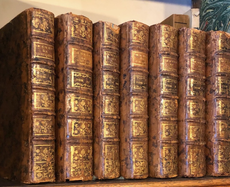 7 vol. in-12, veau marbré, dos orné à nerfs (reliure de l’époque).