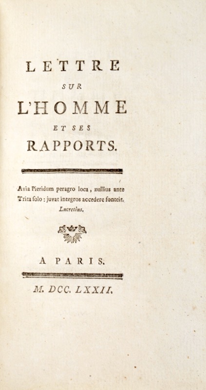 Lettre sur l'Homme et ses rapports.