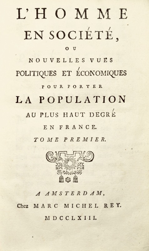 Édition originale du plus important livre de l’auteur. « Plan de réformes entraînant la suppression des métiers parasites, l’élévation des salaires des journaliers, l’amélioration du sort des paysans, des maisons de retraite pour les malades, les vieillards, les infirmes, de façon à assurer au genre humain, avec la suppression des abus de l’administration, le bonheur commun et projet de règlement au sujet des femmes publiques » (INED). Très bon exemplaire. Le faux-titre du premier volume manque. Kress, 6105 ; Higgs, 3036 ; INED, 2117 ; Goldsmiths, 9831.