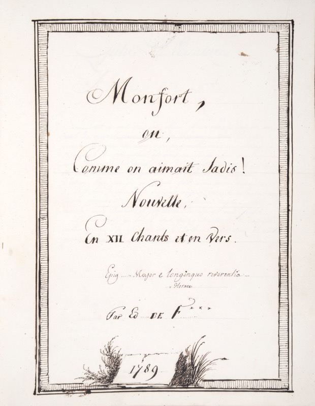 ![FAVIÈRES (Edmond de). [Manuscrit]. Monfort, ou Comme on aimait jadis ! Nouvelle en XII chants et en vers. Epig… "Major e longinqus reverentio" Horace Par Ed… de F*** 1789.](https://bonnefoi-livres-anciens.com/wp-content/uploads/2025/08/16055_1.jpg)