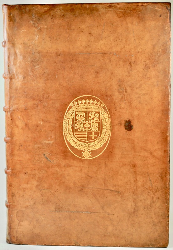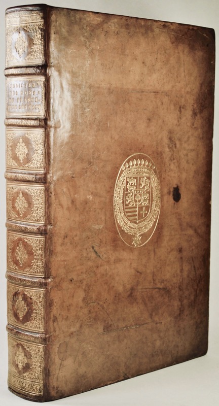 Manuscrit in-folio de (353) ff., table, veau fauve glacé, dos à nerfs richement orné aux petits fers, armes frappées sur les plats, tranches rouges (reliure de l’époque).