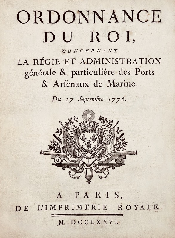 Marine Royale. Ordonnance du Roi, concernant la régie & administration générale & particulière des ports & arsenaux de Marine . Du 27 septembre 1776.